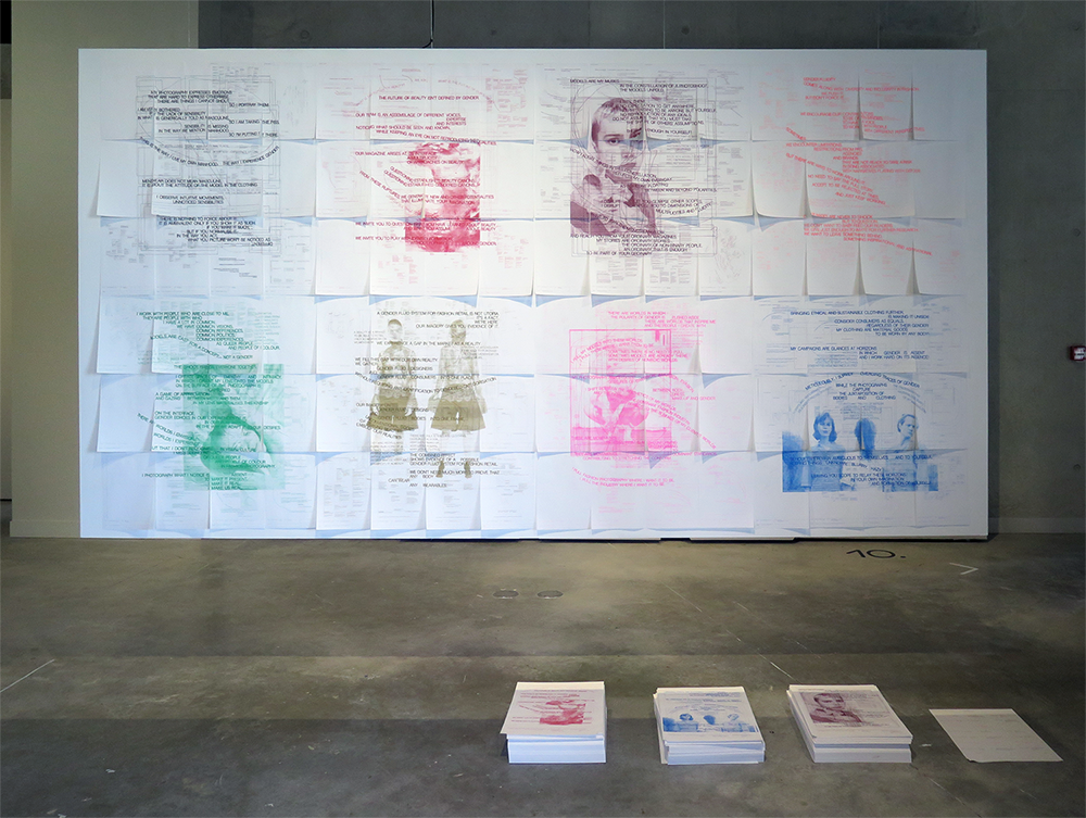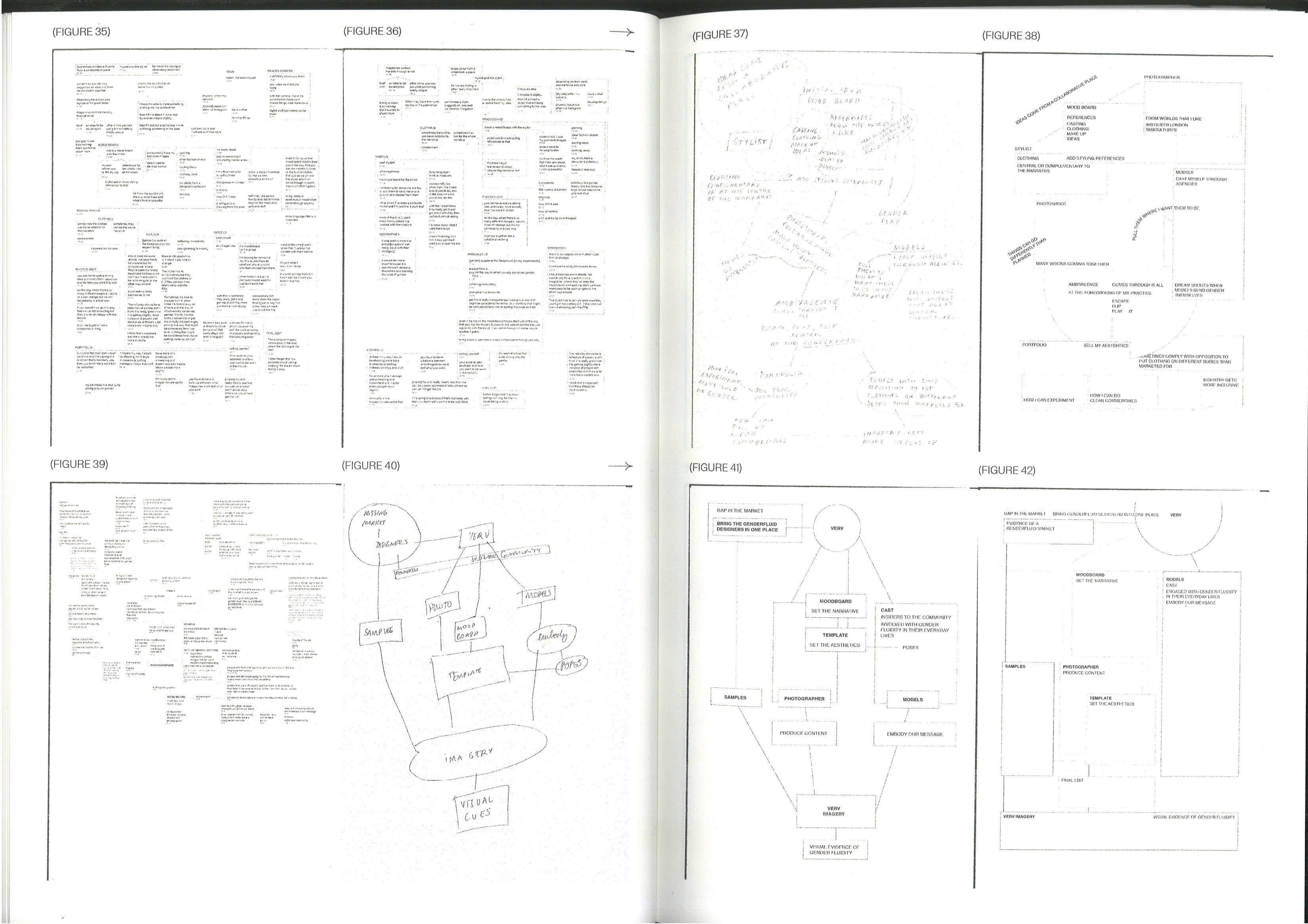 ☞ Eight interviews of London-based fashion producers are transcribed in the form of diagrams across multiple pages in this installation about their work to challenge the distinction of womenswear and menswear.